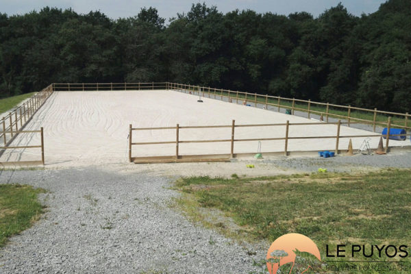 - une carrière de 60X20m en micro sable avec vue sur l’ensemble de l’écurie pour assurer un sentiment de sécurité au cheval au travail